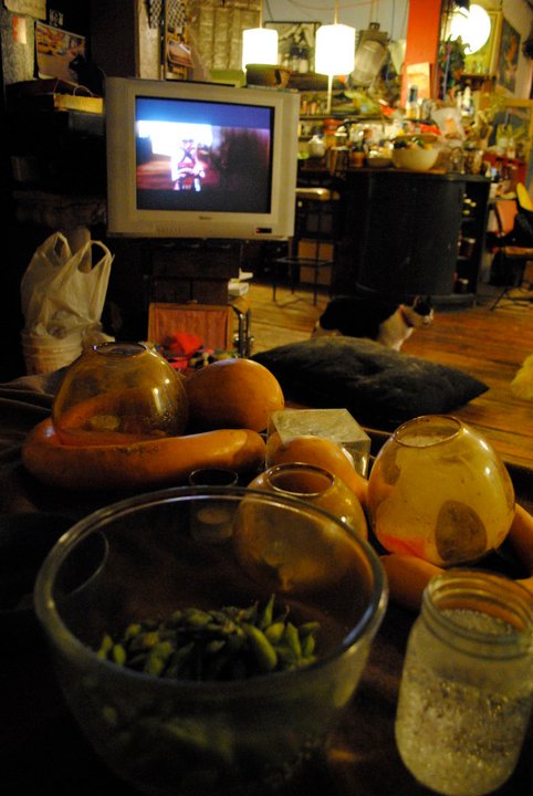 Our curry this night was a vegetable and beef delight. We added some edamame snacking while the curry cooked, pairing the whole cold WInter’s eve with a movie marathon. Good stuff! For more fun ways to cook up a curry and some yummy variations, check out this informative post – Japanese Curry Rice from Scratch