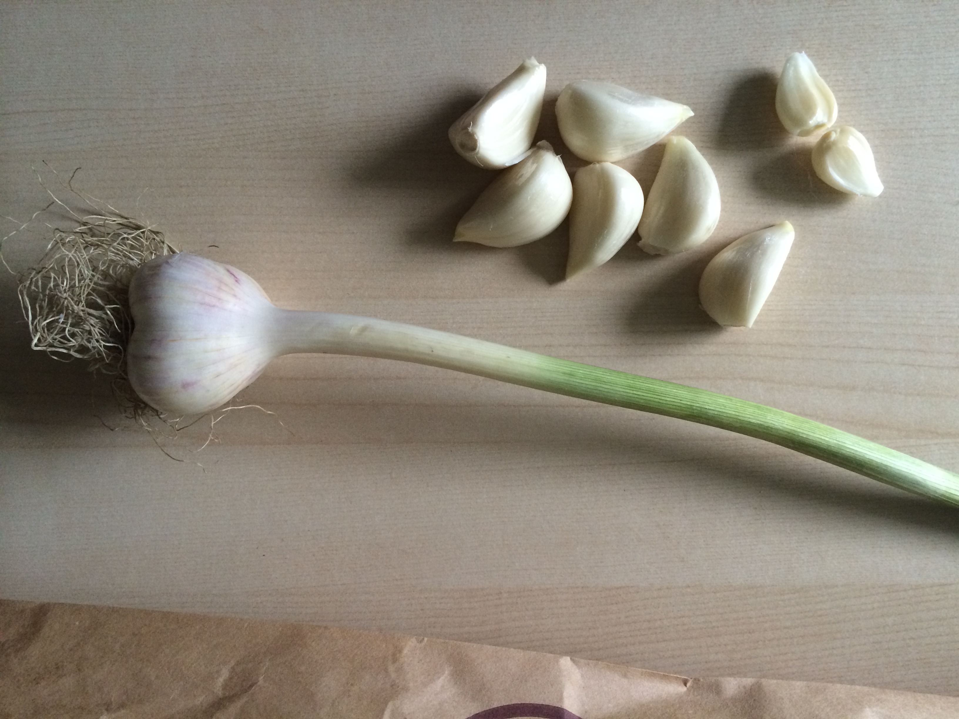 We made this aioli in order to use up some of the fresh garlic we amassed in the last few distribution weeks. We steamed a bunch of vegetables and poached some fish and doused it all in aioli.