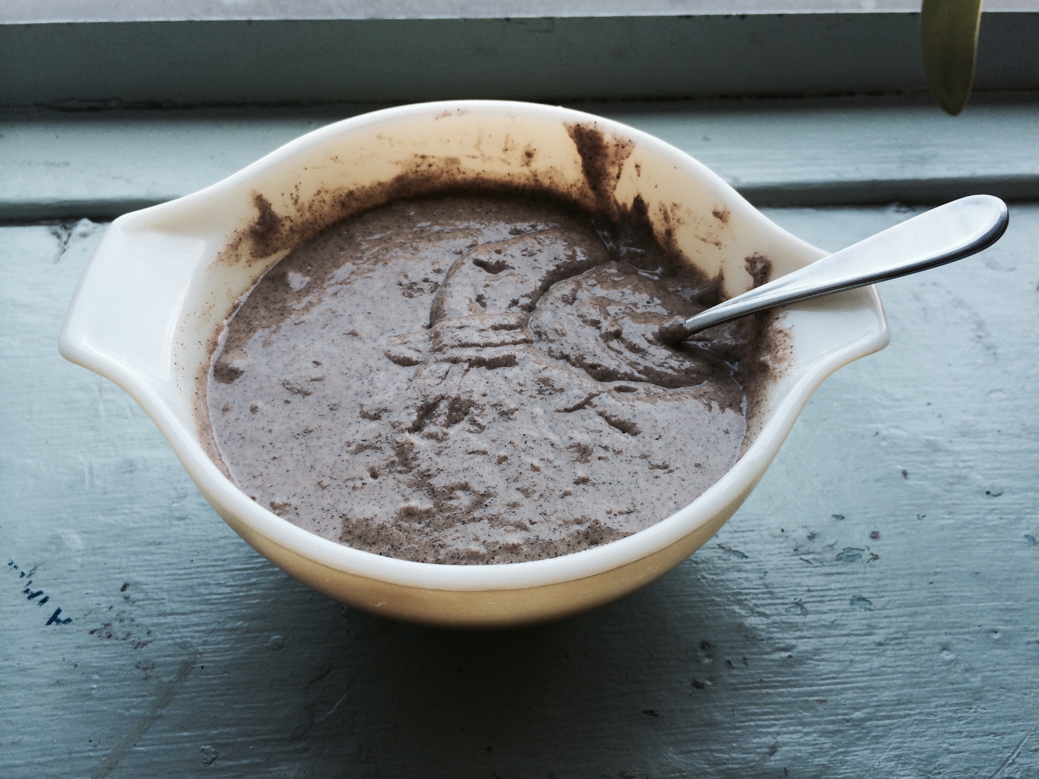 Add lukewarm water until desired pancake batter consistency
