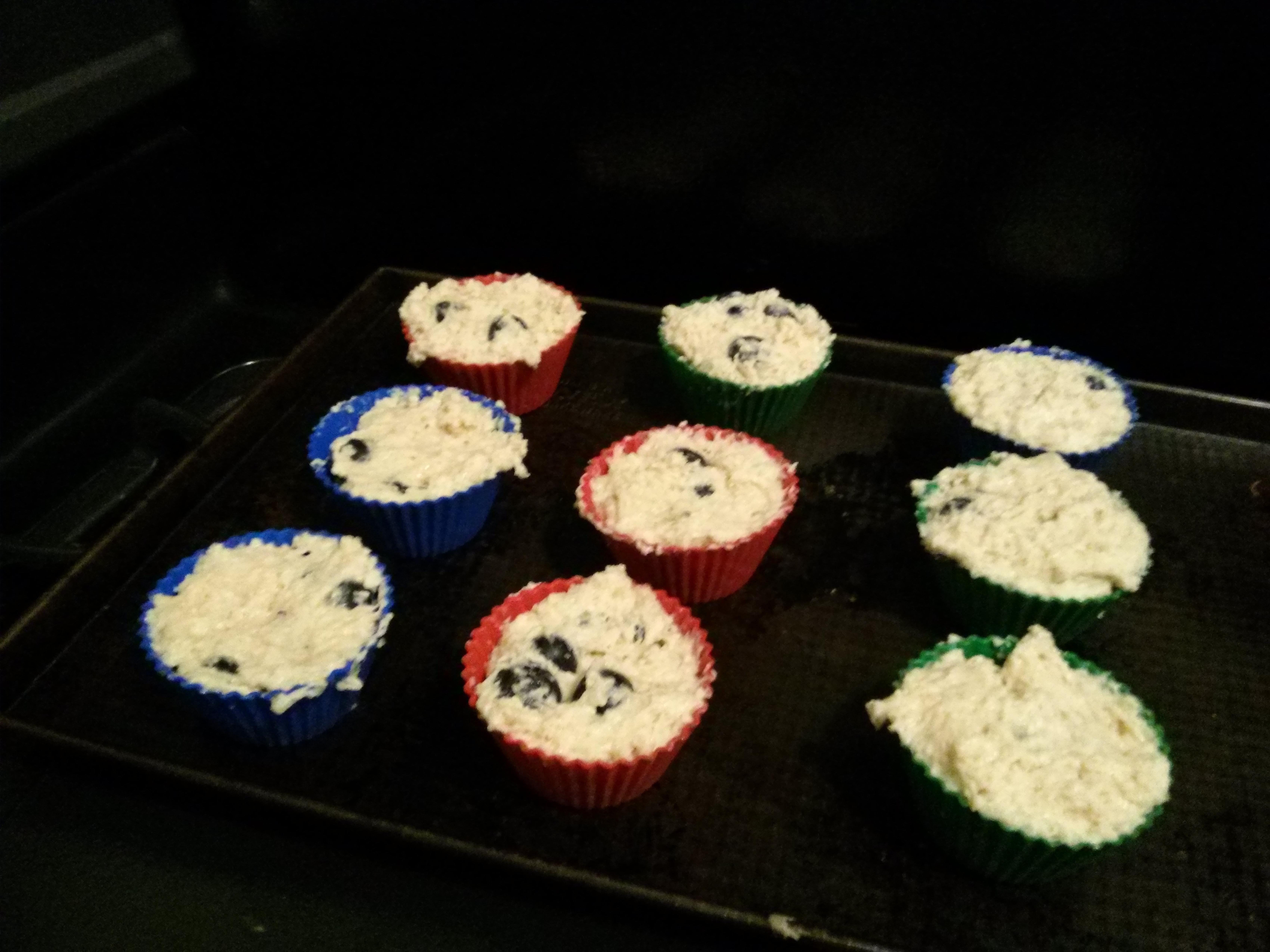Fold in blueberries & pour into baking cups, a little over 3/4 of the way