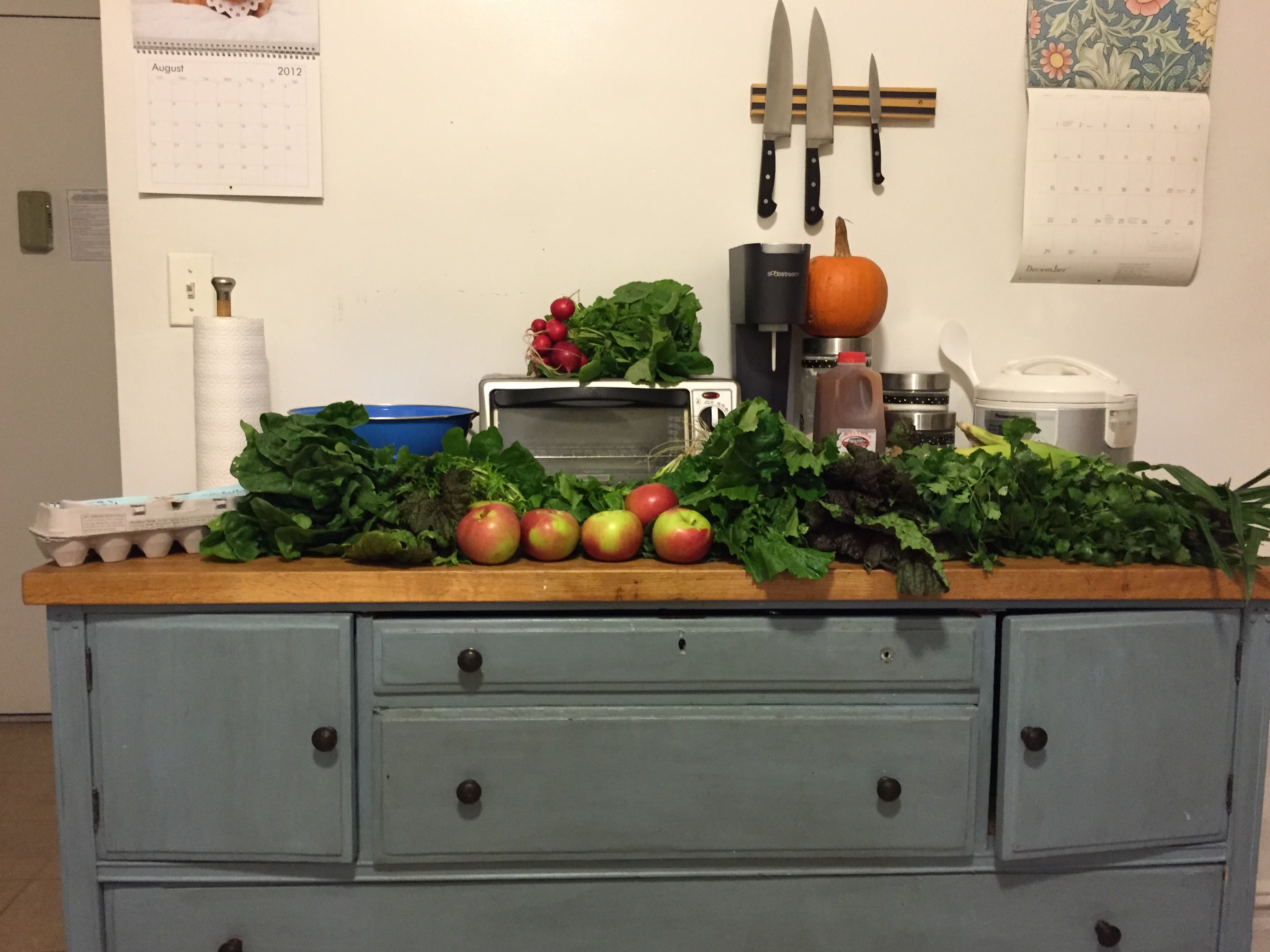 My roommate and I share our CSA which is a half share of veggies, eggs, and orchard. This is our first year doing a CSA and we have been loving it! Here’s how we’ve been using the share this week: