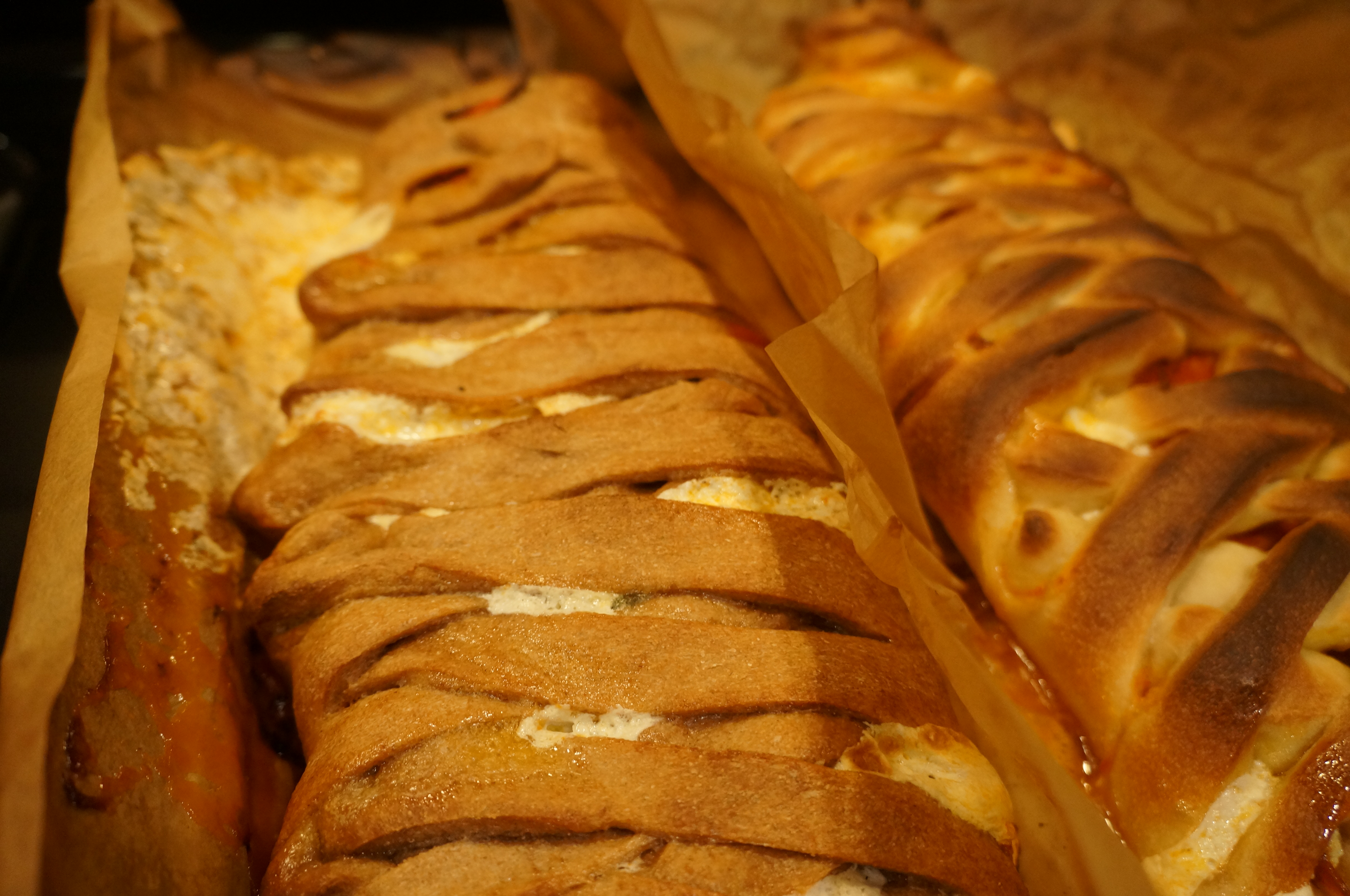 A mummy calzone with spinach and onions.