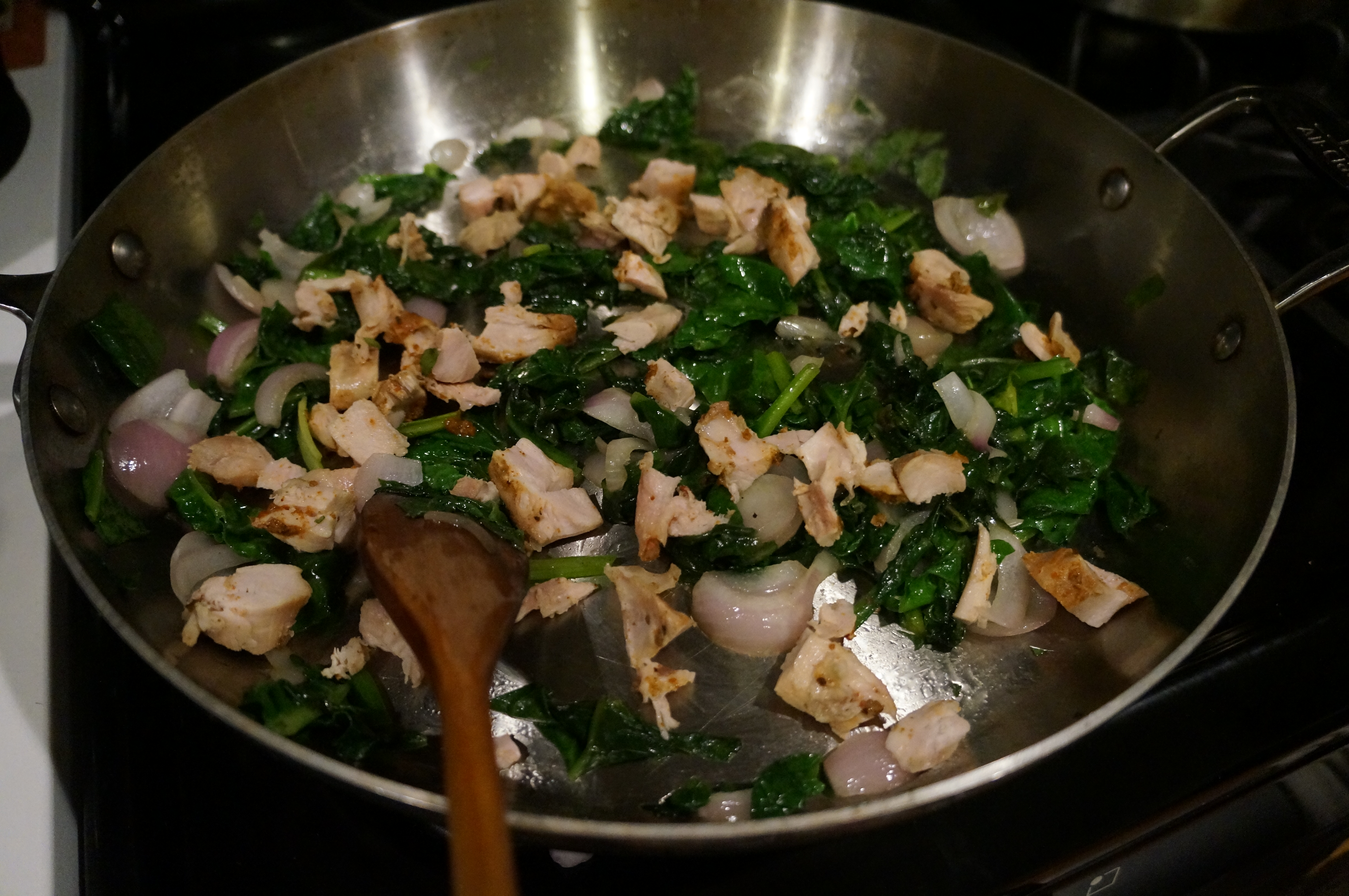 - Then we added the potatoes. When everything was cooked through, we added cream and salt and pepper to taste.