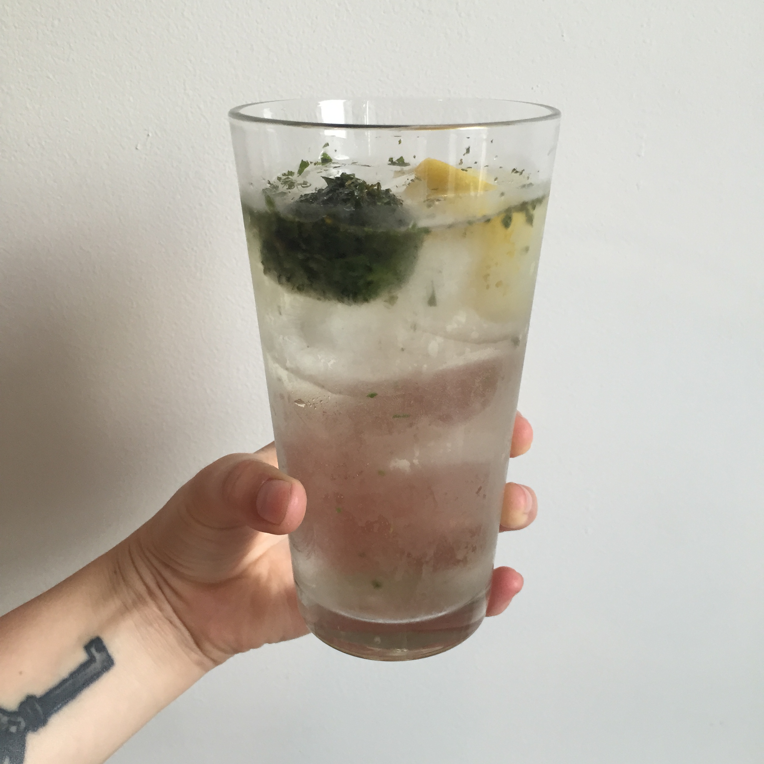 Made a nice gin and soda with lemon and a minty ice cube!