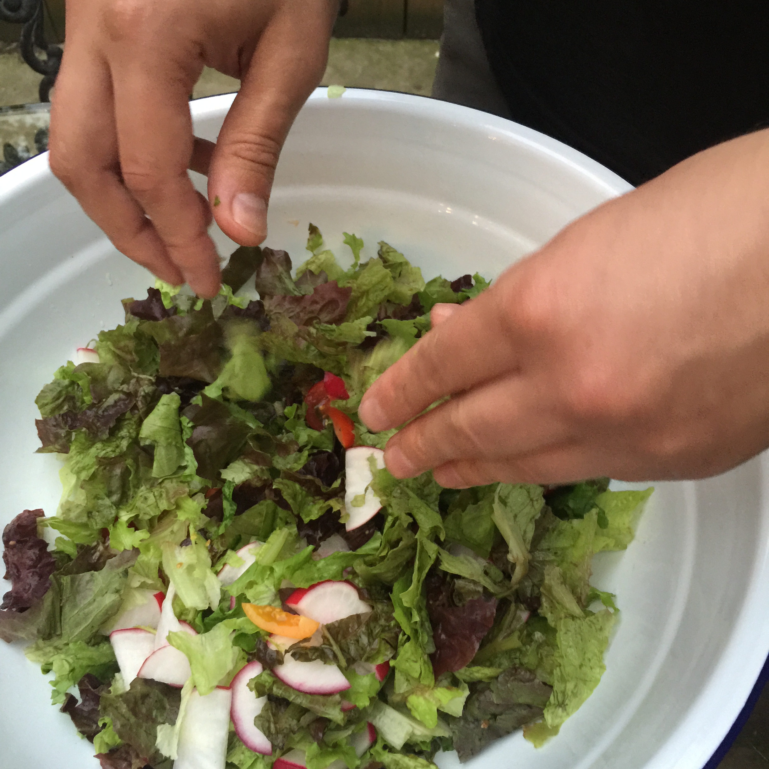 While Luke cut up some stray tomatos, CSA radishes, and the lettuce into a salad,