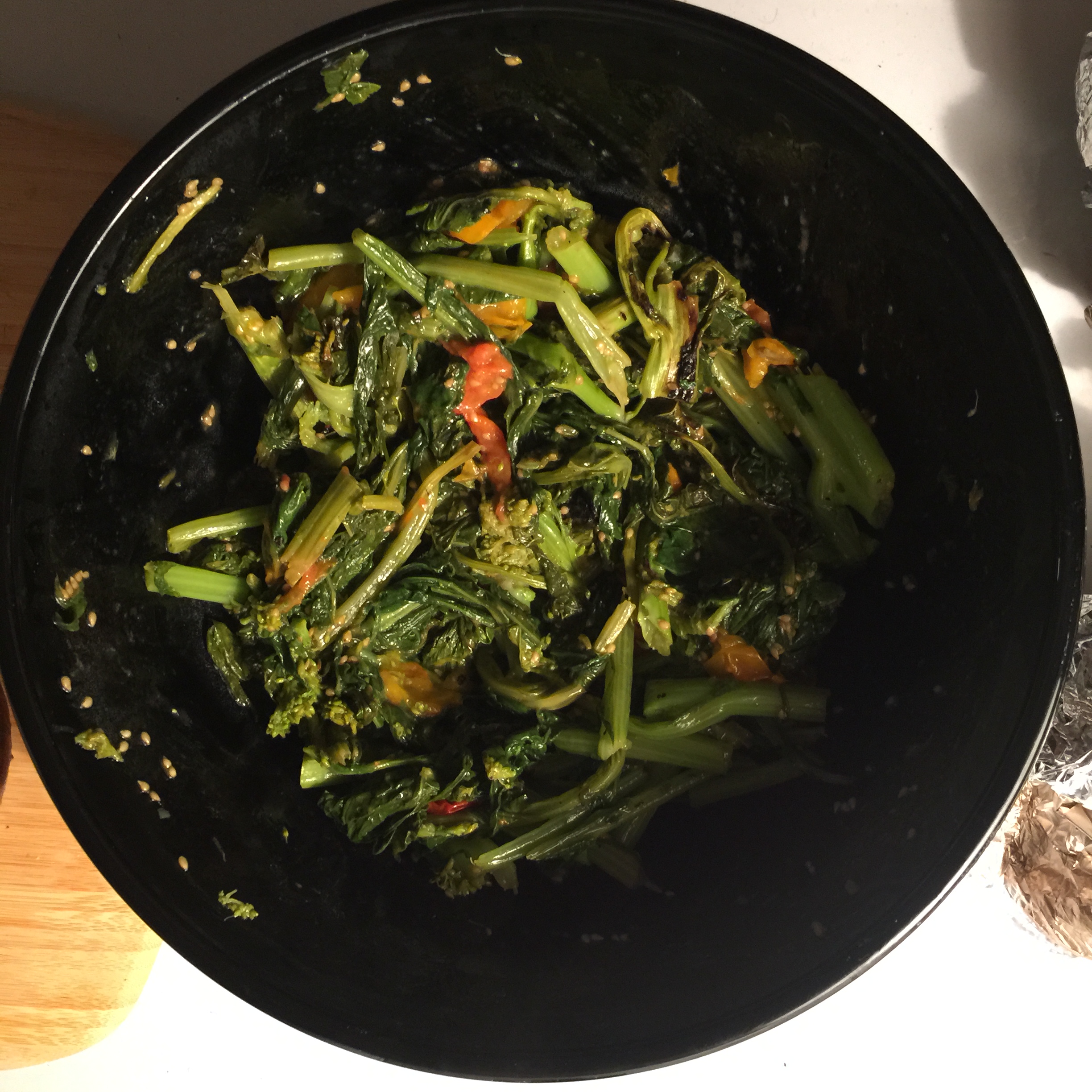 A few nights later a buddy invited me over to grill. “I’ve got proteins, you worry about greens,” he said. On it! Broccoli rabe is a little too bitter for Kristie, so I took the opportunity to get rid of it, as well as the lettuce (the most delicate of our remaining greens.)